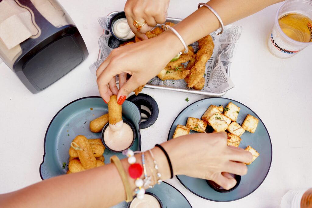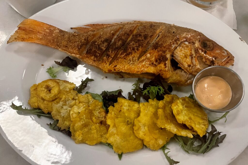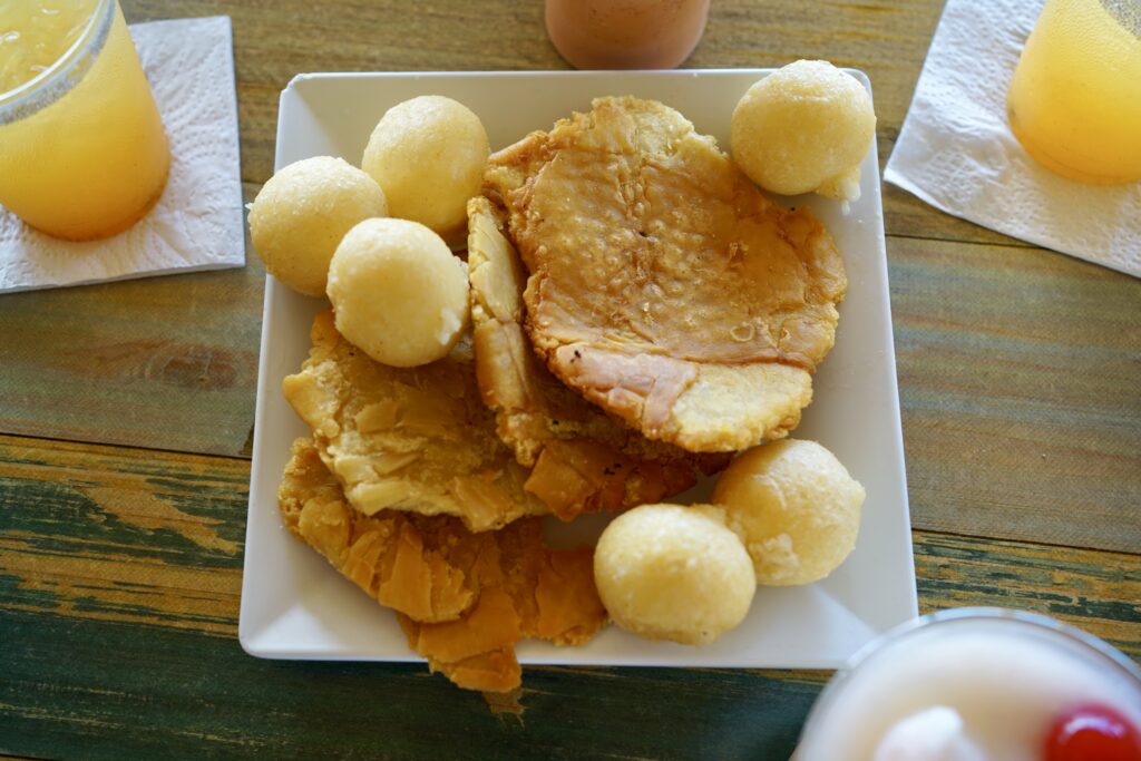 For lunch, walk down the shady path to the other side to go to Puerta Del Mar. Although it’s a seafood restaurant, the best dishes here are the frituras (fried bar bites). Get the tostones de pana and the cheese and yuca balls.