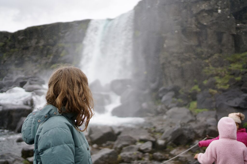 Start your journey at the Öxarárfoss P3 Parking Trailhead. From here, walk through the Almannagjá gorge between the tectonic plates to Öxarárfoss, the waterfall. If you keep walking along the trail, you’ll run into the visitor’s center.